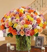 100 Premium Multicolored Roses in a Vase